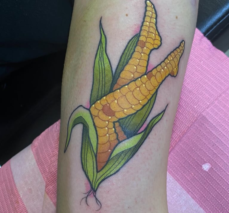 Bright and bold kitschy tattoos full of nostalgia and good vibes.