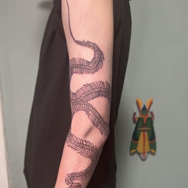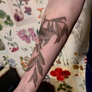 Tattoos of flora and fauna, inspired by old science books – specialising in fine lines, blackwork and muted colour.